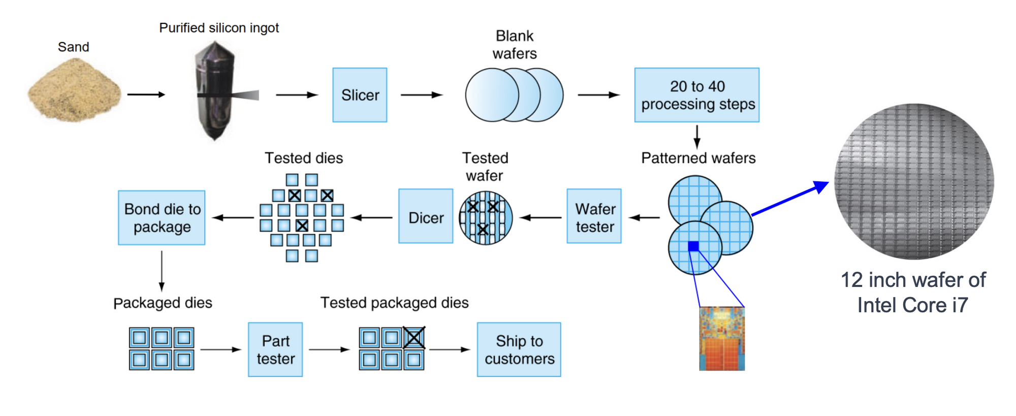 - The manufacture of a chip begins with silicon, a substance found in sand