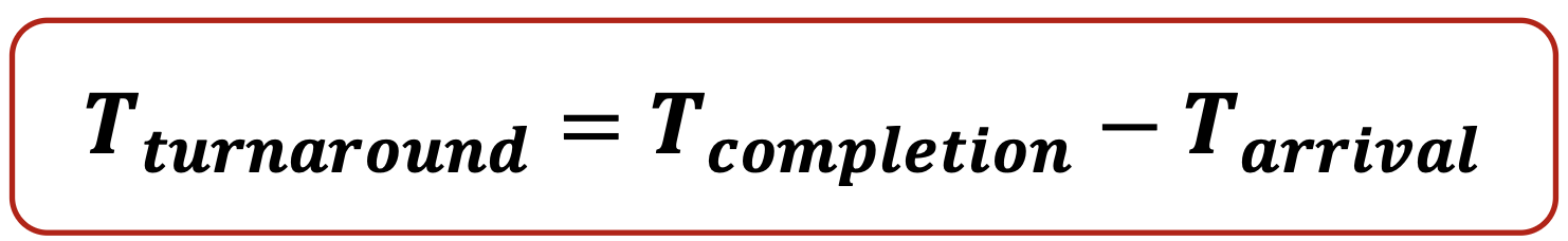 turnaround time은 주요 성능 지표입니다. 이는 작업이 시스템에 도착한 순간부터 완료될 때까지 걸린 전체 시간을 측정합니다.
