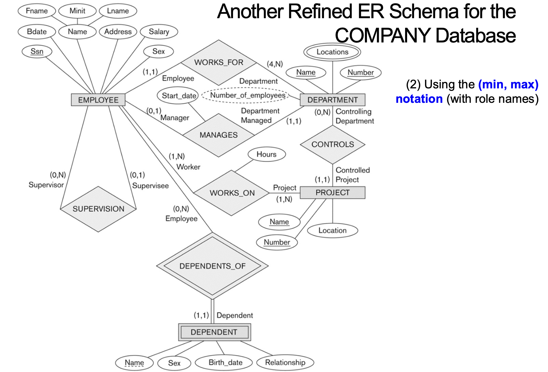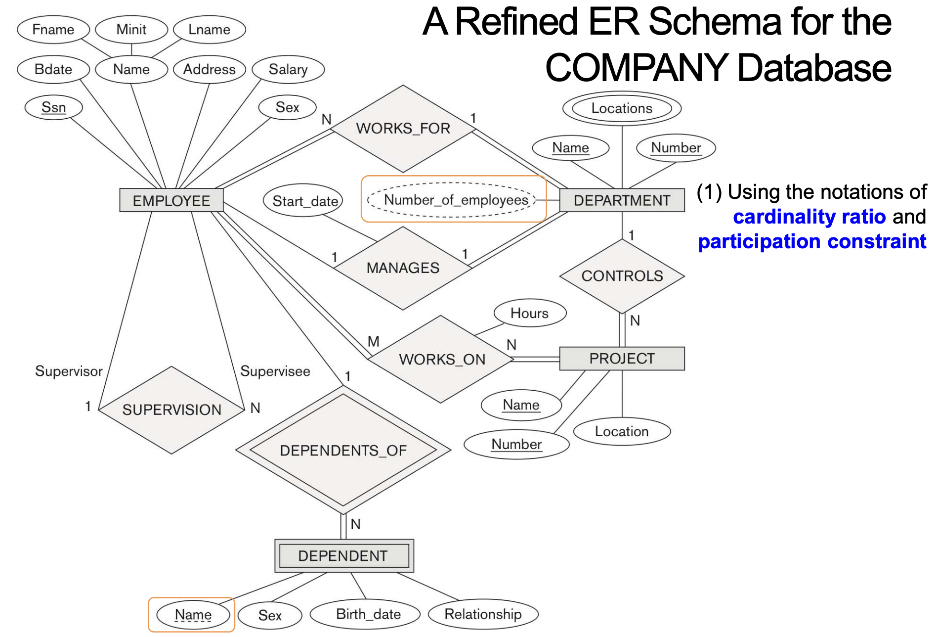 예를 들어,- Manager of DEPARTMENT: 처음에는 부서(DEPARTMENT)의 속성으로 관리자(Manager)를 정의했다. 그런데 이건 사실 MANAGES라는 직원과 부서 사이의 관계이다.