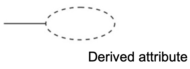 - 유도 속성(Derived): 다른 저장된 속성으로부터 값을 유도해낼 수 있는 속성이다. 직원의 생년월일(Birth_date)로부터 나이(Age)를 계산할 수 있는 것과 같다.