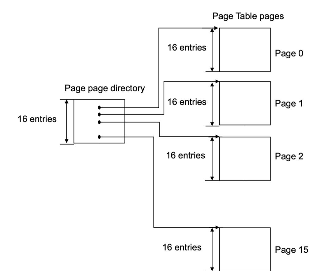 그래서 전체 페이지 테이블을 여러 "블록"으로 쪼개고(Page Table Page로 만든다), 그 블록을 관리하는 또 다른 테이블 페이지 디렉터리(Page Directory)를 만든다.